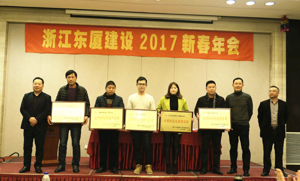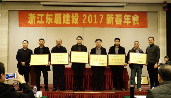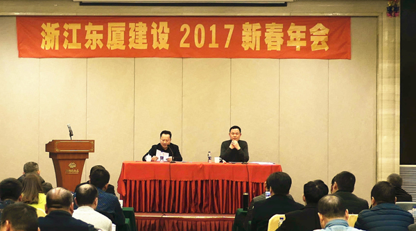 2017年元月9日下午,浙江東廈2017新春年會(huì)在柯巖鑒湖大酒店隆重召開。公司董事長王烈銓,總經(jīng)朱衛(wèi)洋及全體員工、項(xiàng)目經(jīng)理及技術(shù)骨干等100多人參加了會(huì)議。