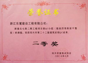 2017年3月1日,紹興市建筑系統(tǒng)第二十二屆QC活動(dòng)成果發(fā)布會(huì)于紹興市稽山賓館舉行。在眾多發(fā)布的QC小組成果中,我司中銀國(guó)際大廈項(xiàng)目部QC小組成果《探討提高止水后澆帶施工質(zhì)量》榮獲紹興市建筑系統(tǒng)QC成果一等獎(jiǎng),新建北七路二期工程項(xiàng)目部QC小組成果《提高瀝青路面平整度》獲得二等獎(jiǎng)。