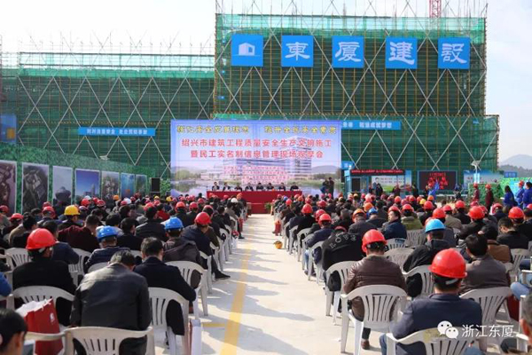 11月24日上午,由紹興市住建局主辦,柯橋區(qū)建管局、鑒湖-柯巖管委會、浙江東廈建設(shè)工程有限公司承辦的紹興市建筑工程質(zhì)量安全生產(chǎn)文明施工暨民工實名制信息管理現(xiàn)場觀摩會在我司鳳凰創(chuàng)新園項目部順利召開。參加會議的有紹興市住建局領(lǐng)導(dǎo)、柯橋區(qū)政府領(lǐng)導(dǎo)、柯橋區(qū)建管局領(lǐng)導(dǎo)、柯橋鑒湖柯巖管委會領(lǐng)導(dǎo)、各區(qū)、縣(市)建設(shè)(建管)局分管質(zhì)量安全副局長、質(zhì)監(jiān)安監(jiān)站的負(fù)責(zé)人、建設(shè)單位領(lǐng)導(dǎo);各區(qū)、縣(市)特、一級資質(zhì)以上施工企業(yè)、甲級監(jiān)理企業(yè)負(fù)責(zé)人代表、市區(qū)所有在建工程項目經(jīng)理;2017年度發(fā)生過安全生產(chǎn)事故的企業(yè)負(fù)責(zé)人、項目經(jīng)理,共500余人參加了此次會議。