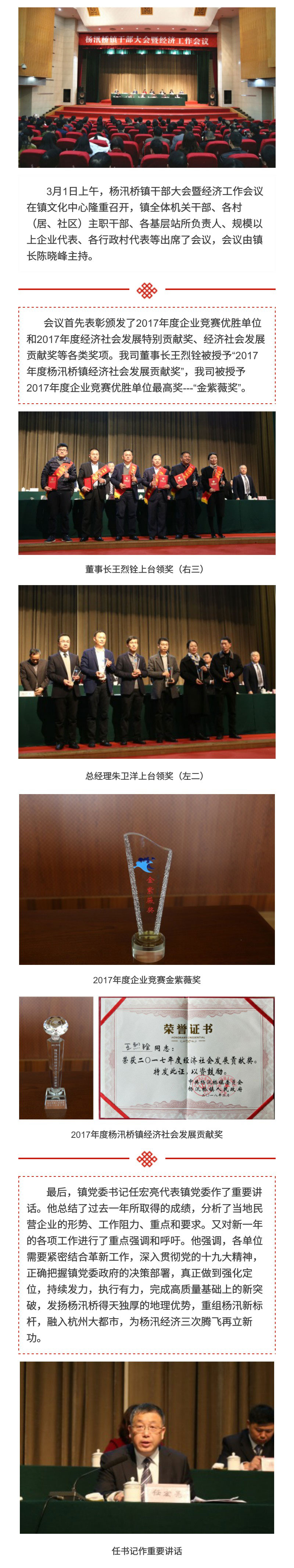 我司再次獲得楊汛橋鎮(zhèn)“金紫薇獎”,公司董事長王烈銓榮獲楊汛橋鎮(zhèn)經(jīng)濟社會發(fā)展貢獻獎