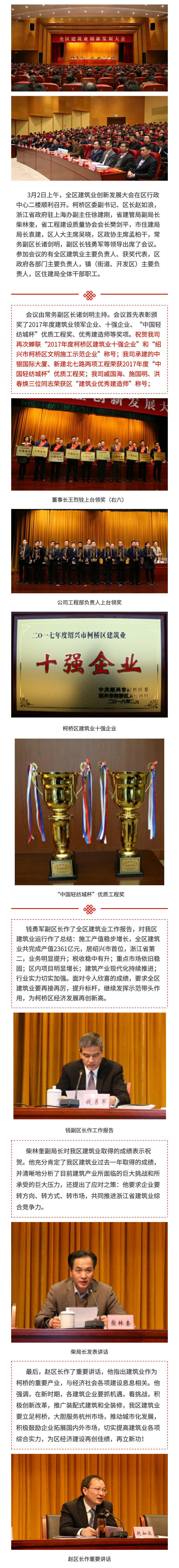 祝賀區(qū)建筑業(yè)創(chuàng)新發(fā)展大會(huì)順利召開,我司蟬聯(lián)“2017年度柯橋區(qū)建筑業(yè)十強(qiáng)企業(yè)” |